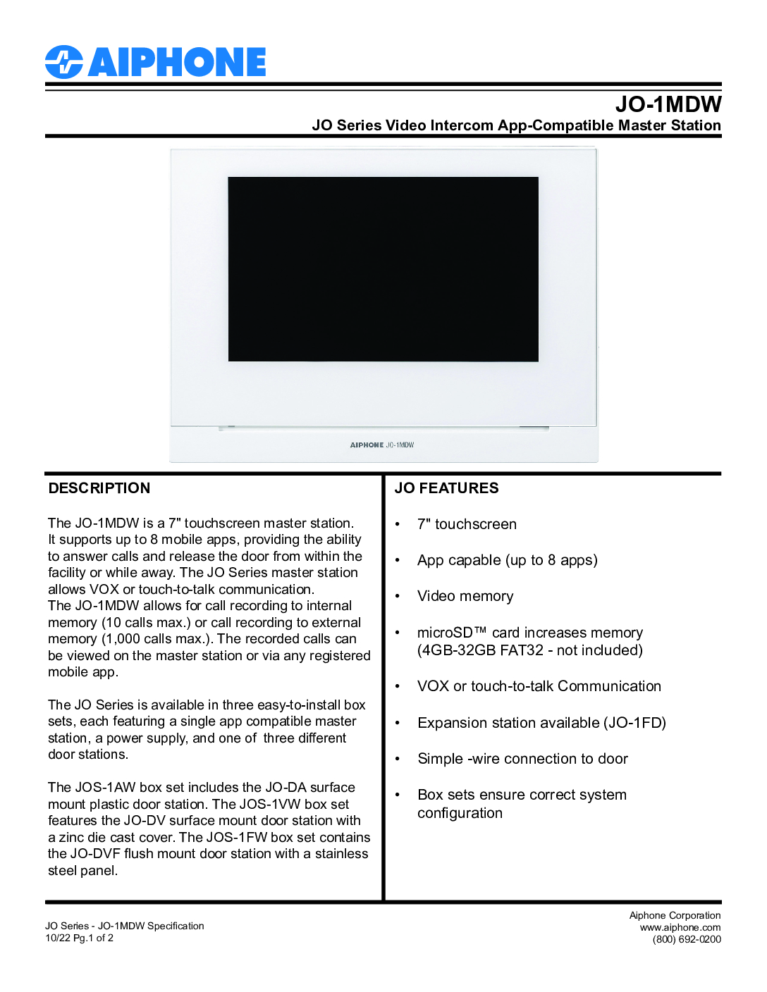 We support JO-DA, JO-DV, JO-DVF, and other AIPHONE intercom systems.