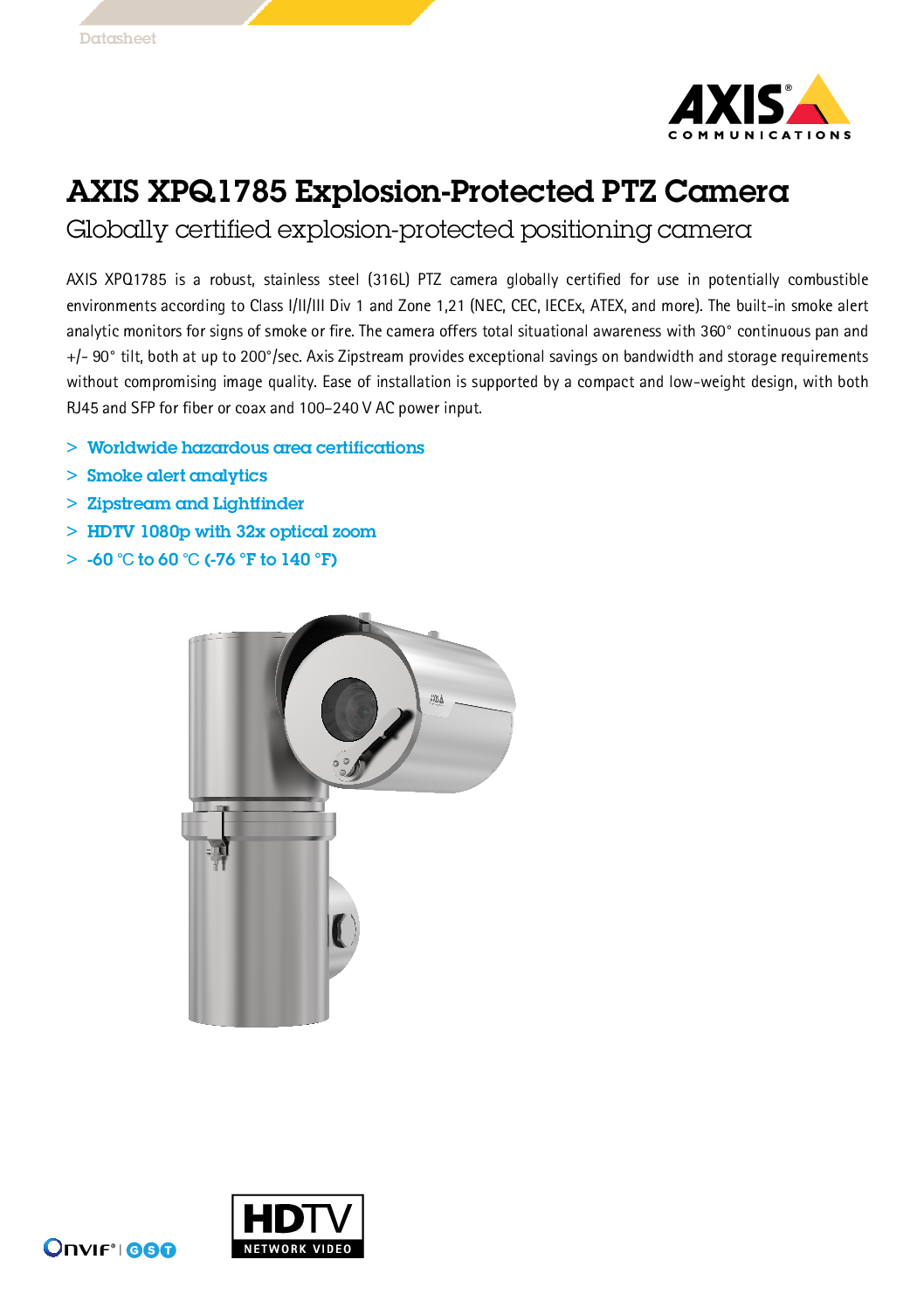 Designed for Zone 1, 2, 21, and 22 hazardous areas, the robust stainless steel housing prevents ignition of flammable gases or dust.32× Optical Zoom & HDTV 1080p Video