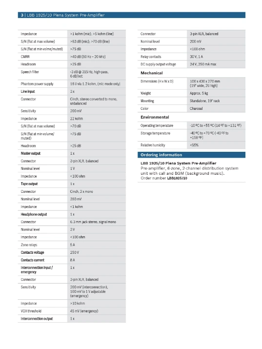 By leveraging these features, functions, benefits, and advantages, the BOSCH PLENA System Pre-Amplifier LBB1925-10 offers a comprehensive solution for effective public address communication in various settings.