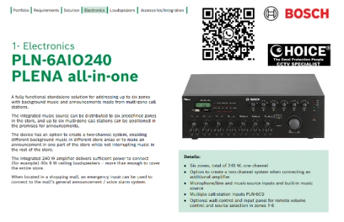- Compatible with other BOSCH public address and voice alarm system components