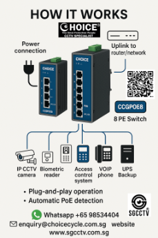 Looking for a compact and efficient networking solution for your security system? The CHOICE Din-Rail POE Switch 5-PORTS CCGPOE5 is the ultimate Power over Ethernet (POE) solution, designed to deliver high-speed data and stable power supply to your CCTV cameras and other POE devices. Perfect for demanding environments in Singapore, this industrial-grade POE switch ensures optimal performance for security system professionals, installers, and maintenance experts.