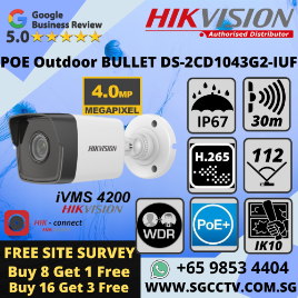 HIKVISION 4MP POE BULLET DS-2CD1043G2-IUF IP67 Microphone Security system Supplier CCTV Security Camera Singapore Repair Replace