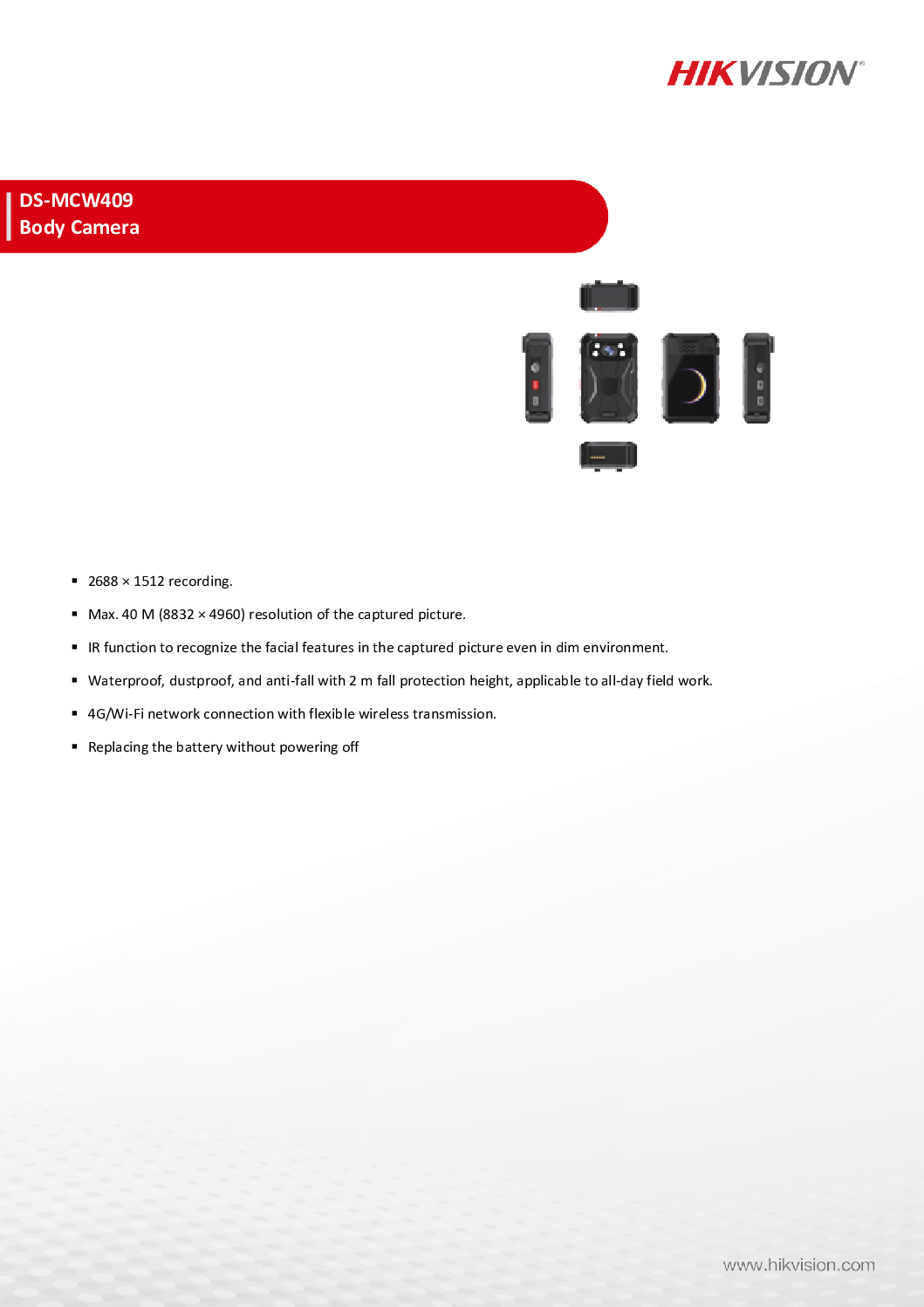 HIKVISION DS-MCW409 Body Worn Camera – Key Specifications