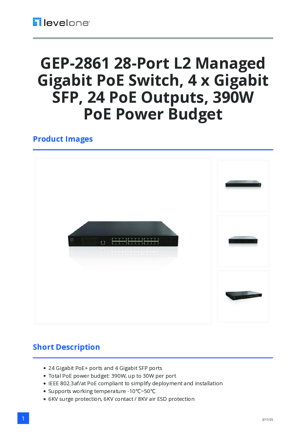 LevelOne, a brand owned by Digital Data Communications GmbH (founded in Dortmund, Germany), delivers European-grade quality and engineering. The GEP-2861 and GES-2118P are built with reliability, performance, and security in mind—perfect for business, industrial, or government applications that demand non-Chinese-made hardware.