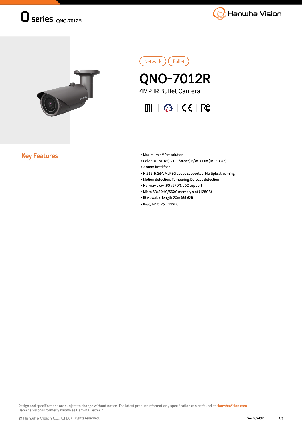 For the most accurate and up-to-date information about the WISENET 4MP CCTV Bullet QNO-7012R, please refer to the official product documentation, specifications, or contact the manufacturer directly. Additionally, details regarding military sensitivity and compliance with specific regulations may require direct inquiry with the manufacturer.
